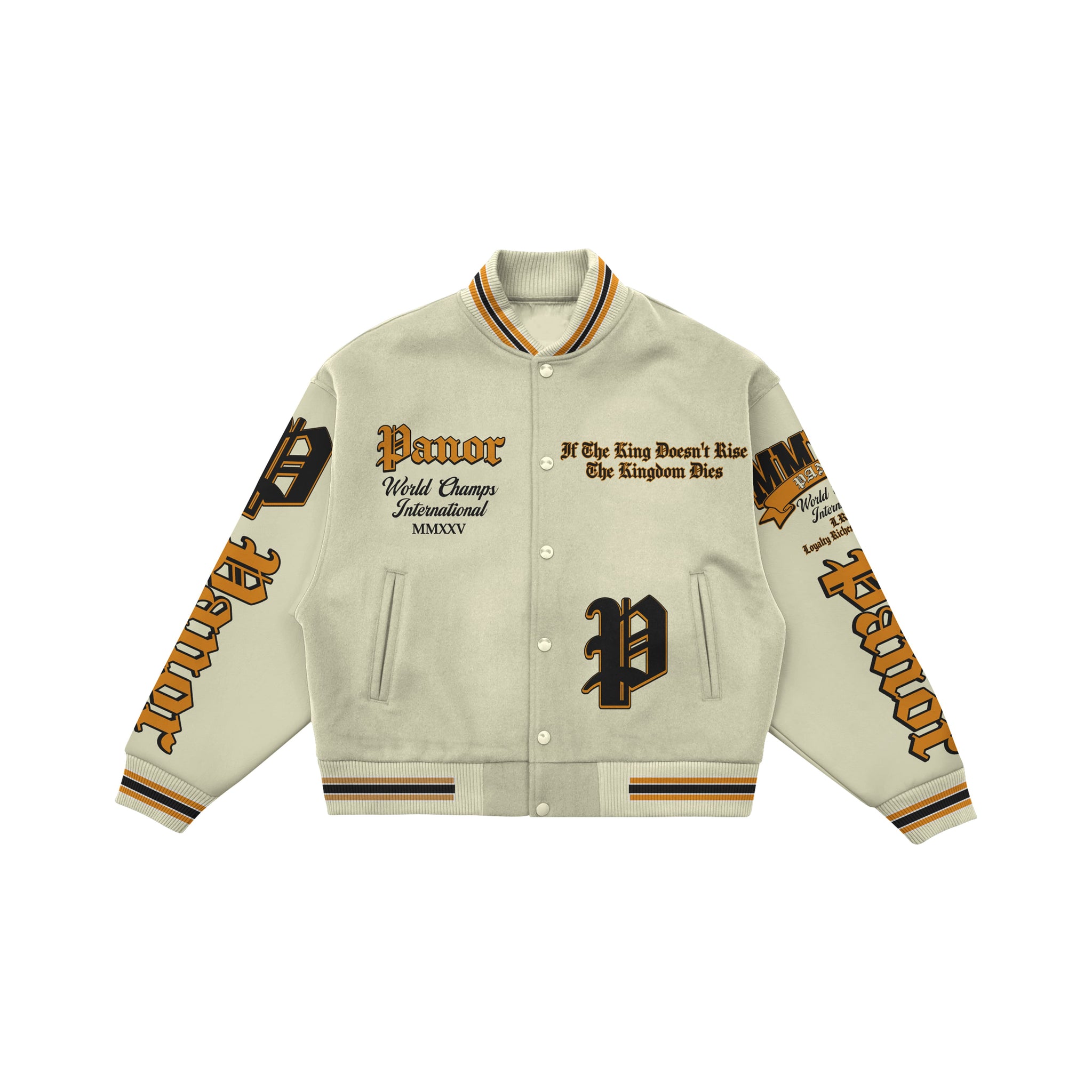 LUXURY LETTERMAN JACKET WITH FULL WOOL BODY, DETAILED EMBROIDERED LOGOS FRONT AND BACK AND SLEEVES FEATURING 2 FRONT POCKETS. GREAT GARMENT FOR THE UPCOMING FALL AND WINTER SEASON.